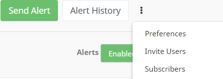 - To view Preferences, Invite Users, and view Subscribers list for alerts, click the 3 vertical dots next to alert history at the top right of the page.